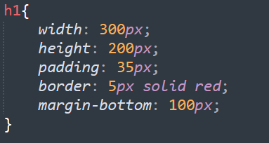 가로길이는 300px, 세로 길이는 200px, 패딩 35p, border(빨간색 테두리): 5px로 설정되어있다.
