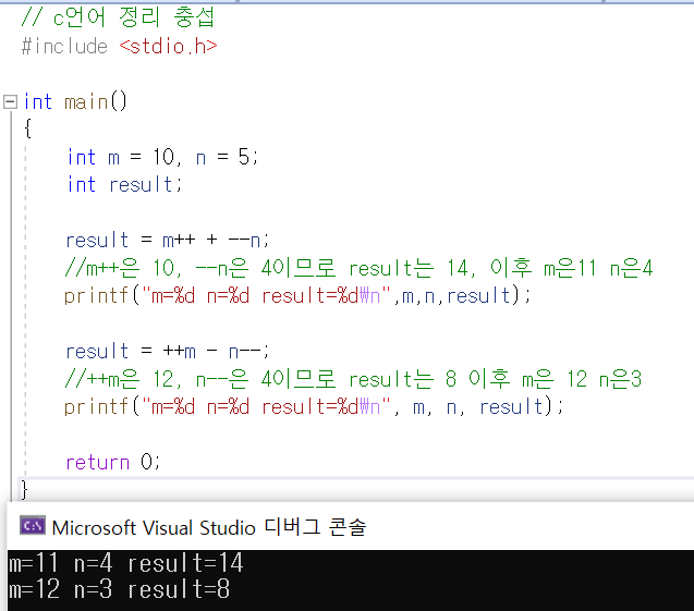증가 연산자 ++는 변수값을 1증가 시키고, 감소연산자--는 변수값을 1 감소시킨다.
