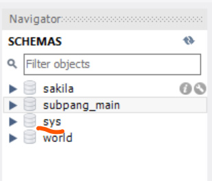sys 데이터베이스 : MySQL 서버의 성능 관련 정보들을 갖고 있는 데이터베이스입니다.