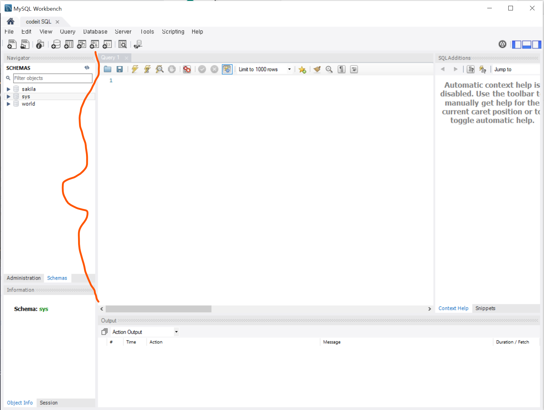 WorkBench(워크벤치)에서 SQL문은 여기다가 작성합니다.