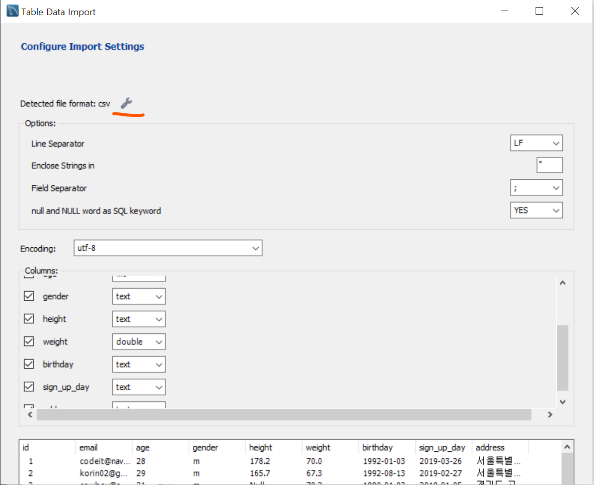 - Workbench에서는 CSV파일을 그대로 테이블로 만들어주는 기능이 있다.