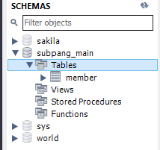 subpang_main.member는 subpang_main 데이터베이스의 member 테이블이라는 뜻이다.