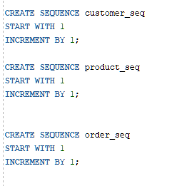 시퀀스를 다시 만들어준다.(customer,product,order)