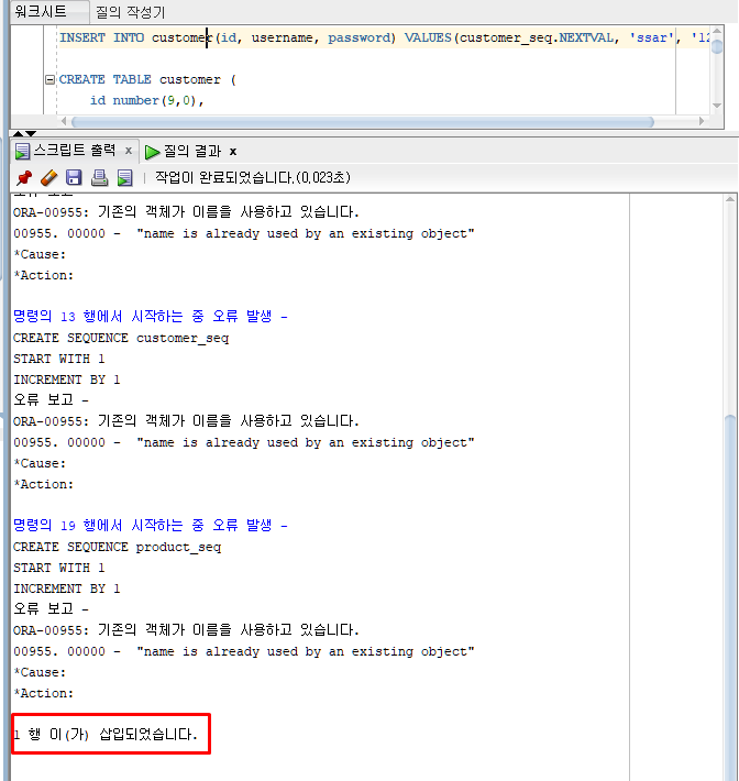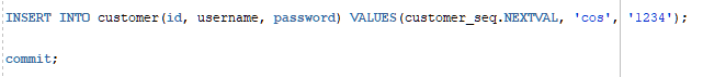 customer 테이블에 값 입력하고 commit
