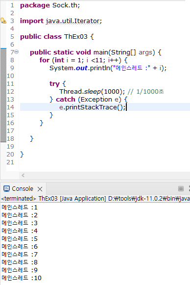 4. 리얼 스레드가 실행 되면서 maind의 for문이 같이 동작하게된다.