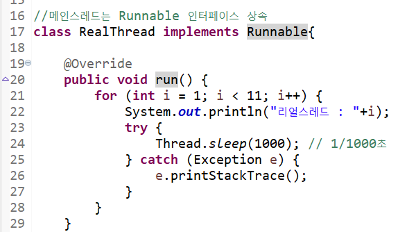 RealThread는 Runnable 인터페이스를 상속 받습니다.